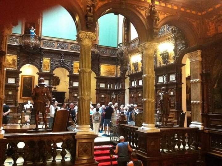 פסלים בכניסה של שליטים חשובים מרומניה. בארמון 160 חדרים 30 אמבטיות 66 מ׳ גובה.